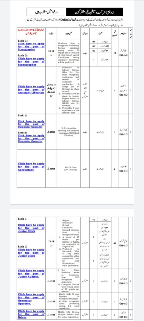 Session Court Muzaffargarh has blazoned new jobs for which operations are invited from the Punjab Domiciled campaigners who are well educated, professed, and well- chastened for the following government jobs similar as (Stenographer (BS-16), Assistant Librarian (BS-16), Computer Operator (BS-15), Accountant (BS-15), Junior Clerk (BS-11), Junior Auditor (BS-11), Generator Operator (BS-08), Motorist (BS-05)).